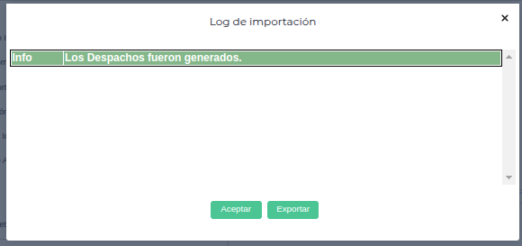 Una vez generado los despachos se puede visualizar: