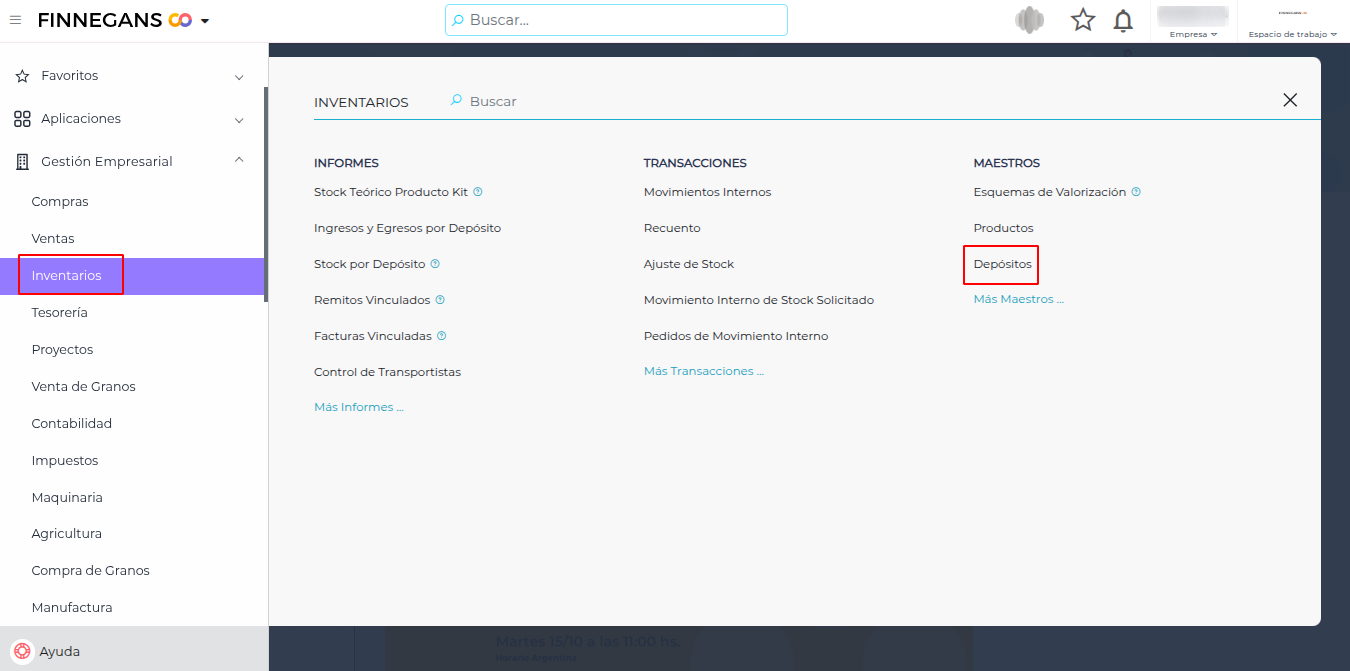 - Ingresar a: Gestión Empresarial > Inventarios > Maestros > Depósitos.