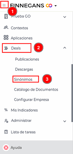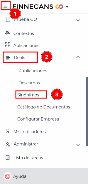 Desde el menú de GO, Menu → Deals → Sinónimos