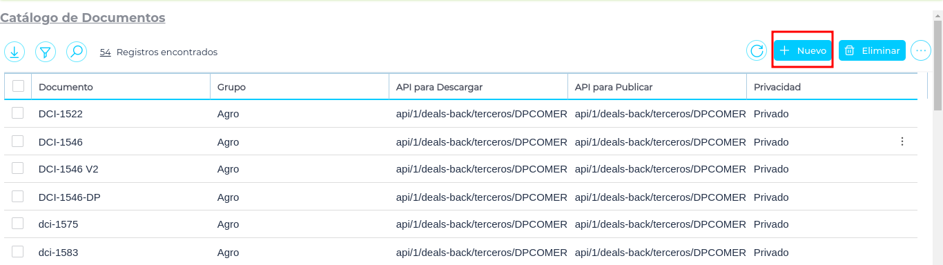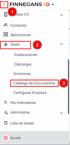 Para ello, ingresamos al catálogo de documentos, esto se logra mediante ir al menú → Deals → Catálogo de documentos