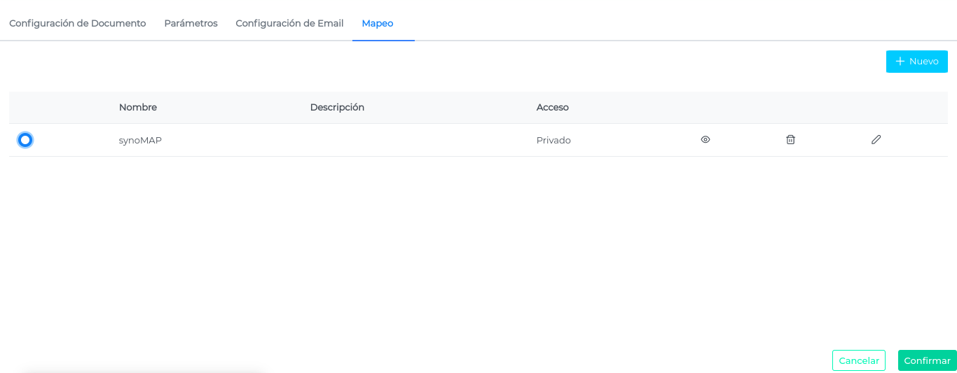 Al hacer click en sinónimos veremos todos los documentos listados en una grilla para una misma empresa que tengan sinónimos, esta grilla contará con tres columnas: