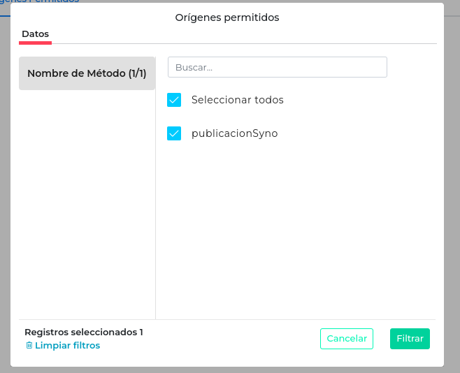 -Origen: Dado por el origen del post (Hay 3 posibles orígenes, CFU Remitente (en caso de publicaciones de terceros cuando publica para otros.), Campo JSON (se define según el valor de un campo del json que se publica.) y Código del método(el usuario define un código que lo hace único).