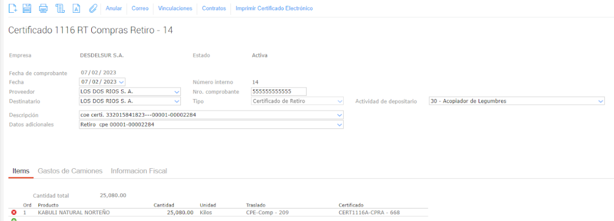 Agregar y configurar en “Comprobante tipo impositivo” una opción con el Código de AFIP 332 (se lo puede renombrar Certificado Electrónico retiro de granos).
