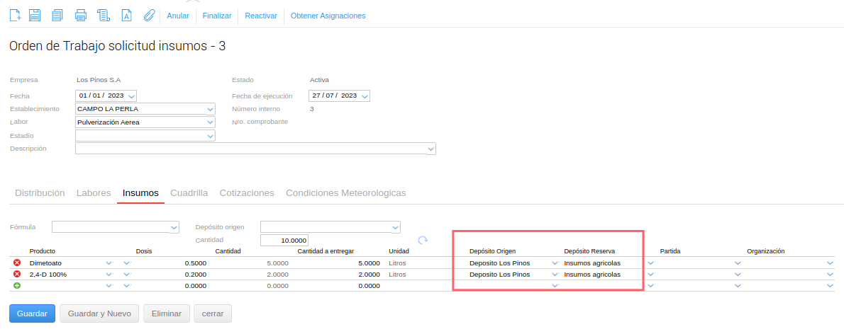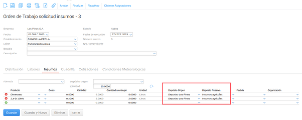 Esta funcionalidad tiene como objetivo agilizar la carga de despacho de insumos, partiendo de información previamente detallada en las órdenes de trabajo.