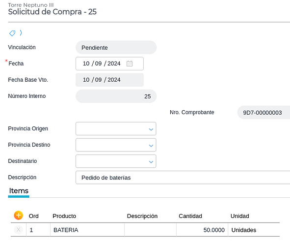 Se tiene como objetivo en este desarrollo el control de los movimientos internos originados desde una Solicitud de Compras, gestionada por el personal de Depósito Central y que permite liberar a Compras de aquellos ítems que posee en stock la empresa y los cuales no deben gestionar.