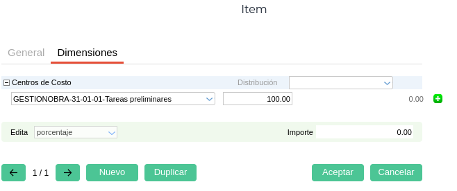 Respetará los depósitos elegidos en el Pedido de Movimiento Interno pero puede optarse por elegir otro depósito de destino, por ejemplo, el depósito “En tránsito”. Es necesario asimismo indicar el o los centros de costo: