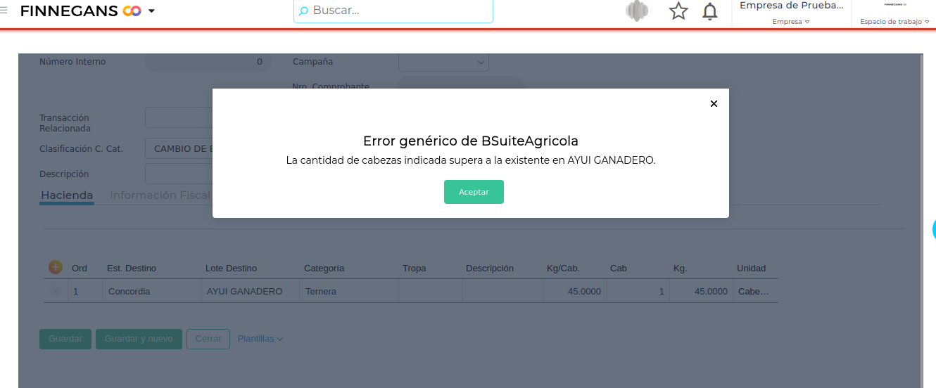 Mensaje: “La cantidad de cabezas indicada supera a la existente en ****”: