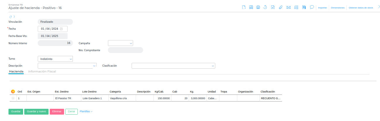 - Consecuencia: El stock físico se actualiza correctamente, reflejando el número de cabezas disponibles. No obstante, el stock utilizado para la valorización no se incrementó, lo que genera un desbalance. Cuando se produce una venta o egreso, la cantidad de cabezas vendidas se resta del stock valorizado que nunca se actualizó, lo que resulta en un saldo negativo.