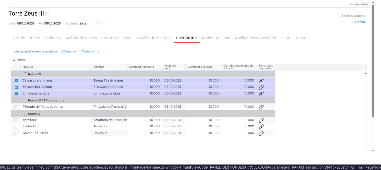 Esta solapa permite gestionar la contratación de subcontratistas directamente desde la planificación del proyecto.