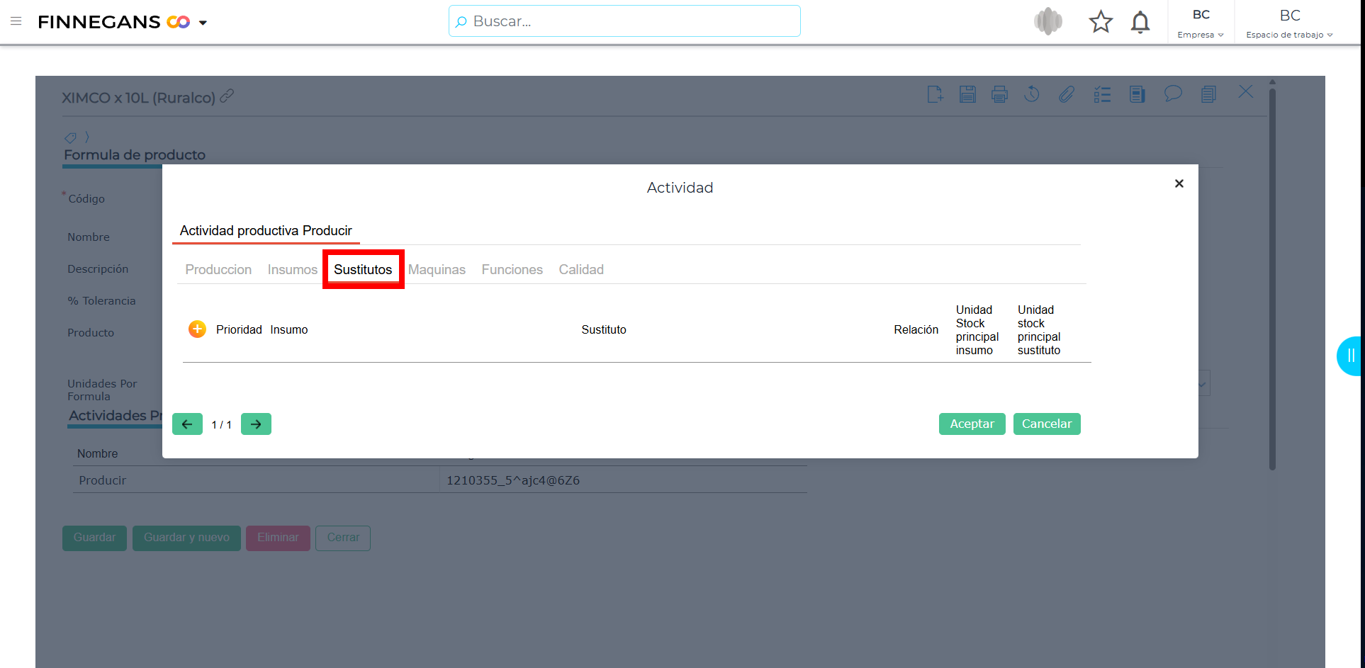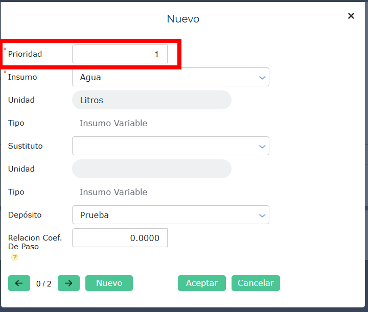 - Establecer una prioridad y un coeficiente de sustitución entre insumo y sustituto.