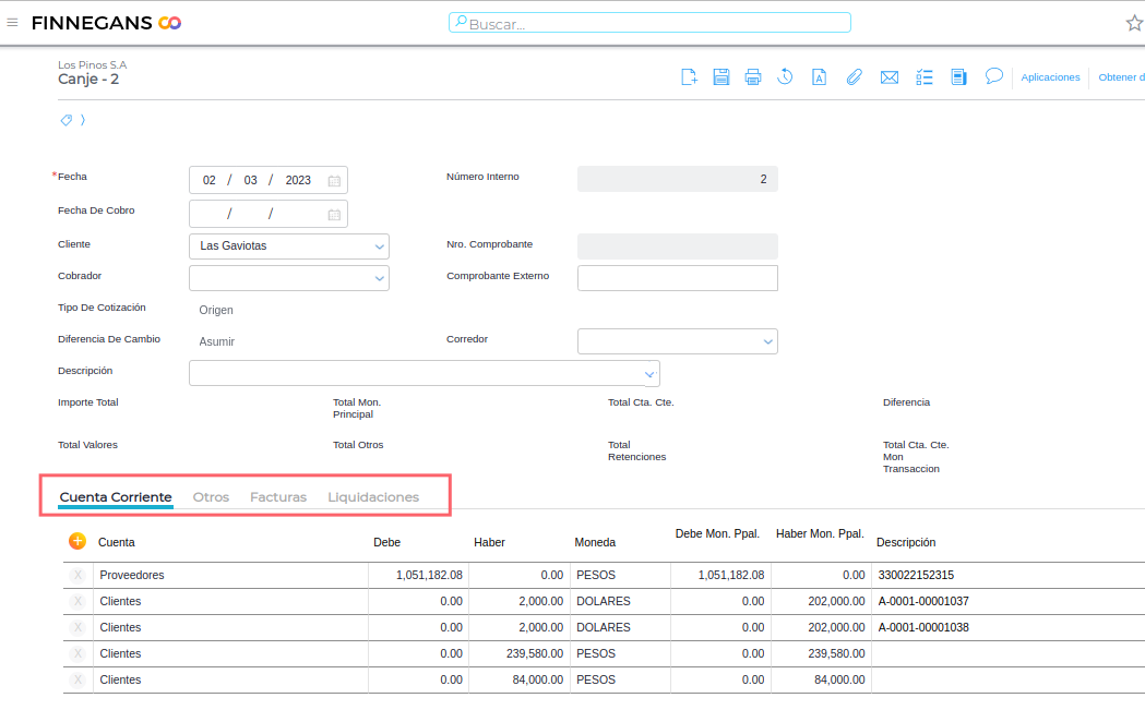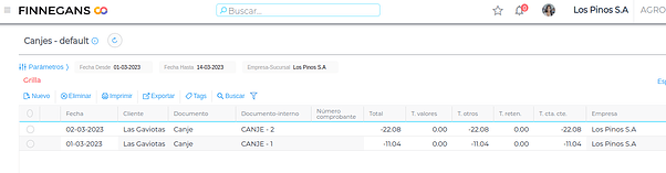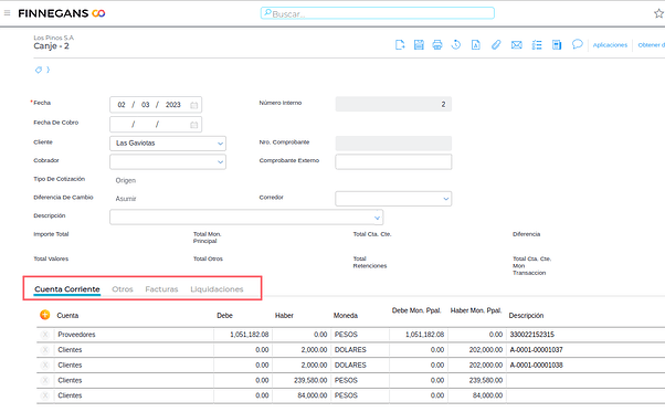 Desde la view de canjes se pueden analizar los documentos que quedaron aplicados.