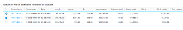 - FACTURAS DE VENTAS DE INSUMOS PENDIENTES DE LIQUIDAR