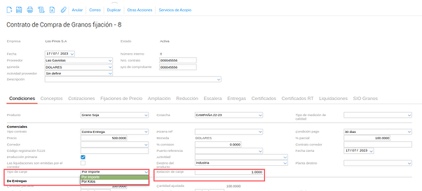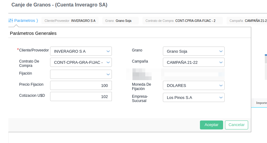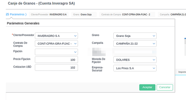 Esta funcionalidad está diseñada para aquellas empresas que venden insumos y como parte de pago reciben el equivalente en granos.