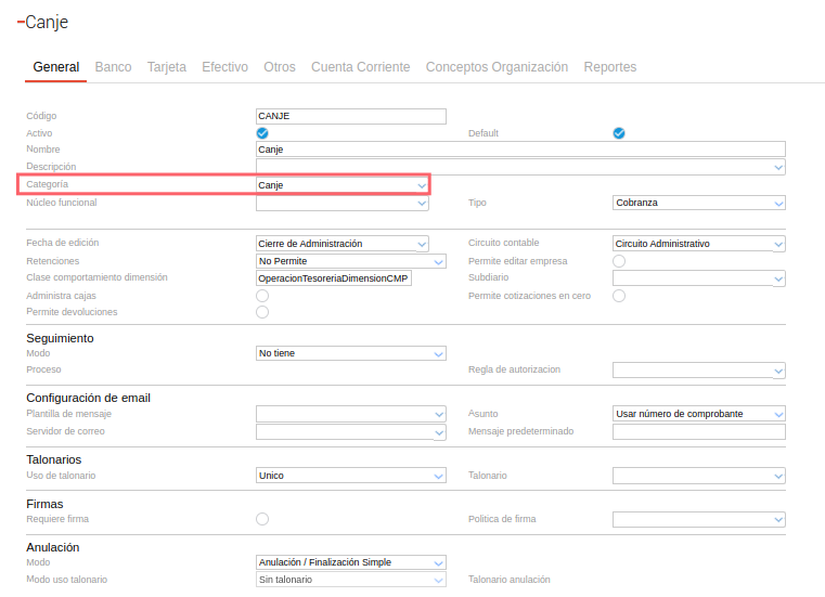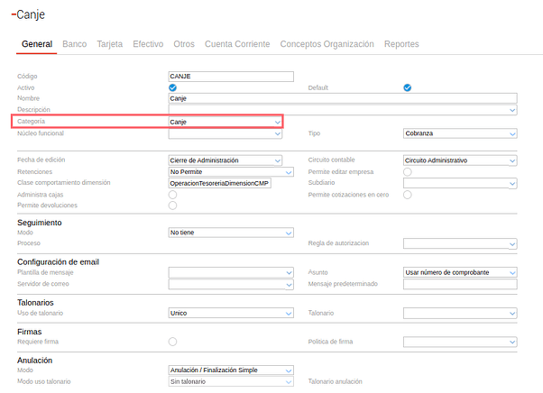 Configuración en el Tipo de Documento Canje: check llamado “Computar diferencia de cambio”