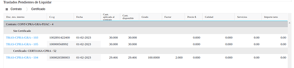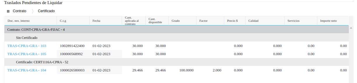 Para los dos casos es obligatorio tener contratos de granos con transacciones de fijación dados de alta y disponibles para liquidar. +info