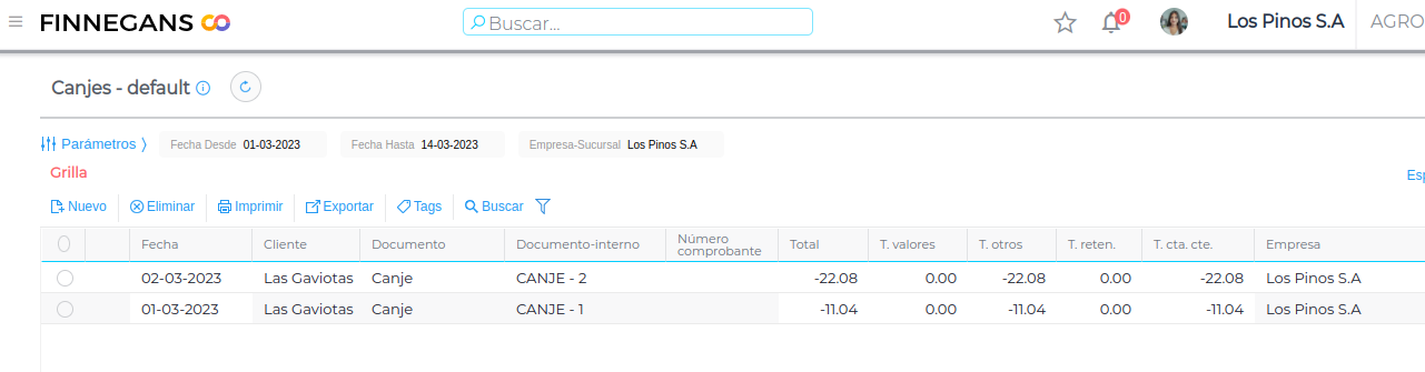 Nota: El documento de canje queda APLICADO a todas las transacciones para que se puedan relacionar y analizar facilmente todos los documentos generados por el proceso de canje.
