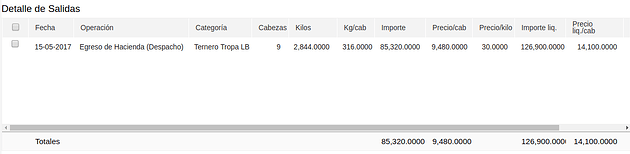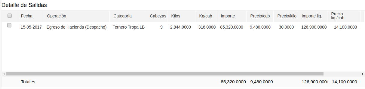 -Ventas totales: Importe de liquidaciones de hacienda de la tropa seleccionada.
