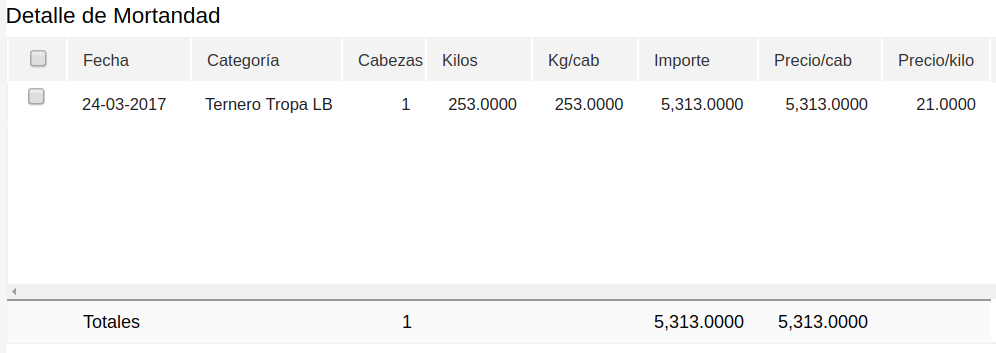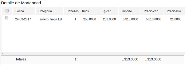 - Valorizado: valor de los kilos de tipo muerte según valorización de hacienda