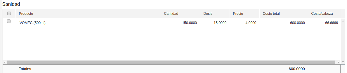 -Dosis: Cantidad de producto dividido cantidad de cabezas. (Cabezas en Stock + Cabezas Salidas)
