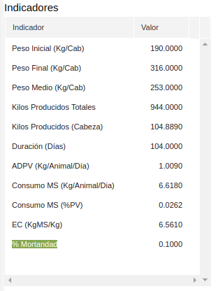 -Peso Medio (Kg/Cab): Peso medio de los animales durante el periodo de producción (Peso Inicial + Peso Final) / 2)