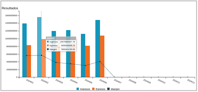 Resultados: el valor presentado es la resta entre los ingresos y los egresos.