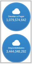 Deudas a Pagar: Indica el total de las facturas de compra menos las notas de crédito, pendientes a ser pagadas. El valor no es el bruto, sino el total y corresponde a todas las facturas hasta la fecha actual o la establecida en parámetros. Se cancelan por medio de las órdenes de pago realizadas.