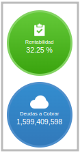 Deudas a Cobrar: Indica el total de las facturas de venta menos las notas de crédito, pendientes a ser cobradas. El valor no es el bruto, sino el total y corresponde a todas las facturas hasta la fecha actual o la establecida en parámetros. Se cancelan por medio de las cobranzas realizadas.