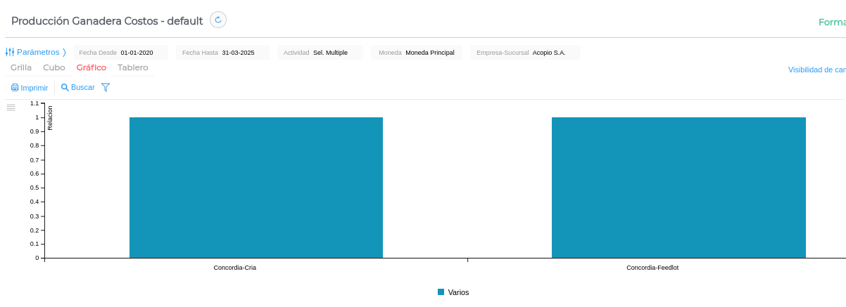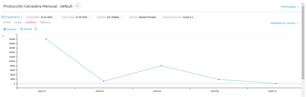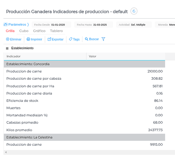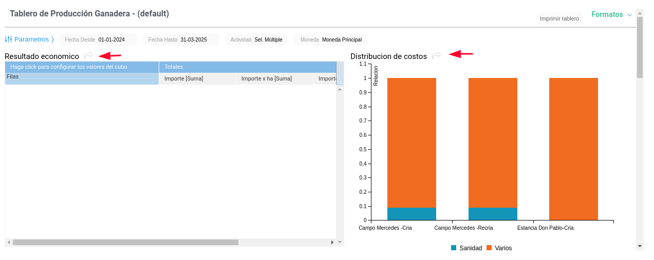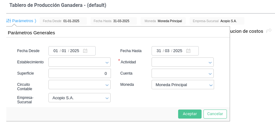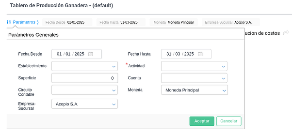 Menú → Ganadería → Informes → Tablero de producción ganadera