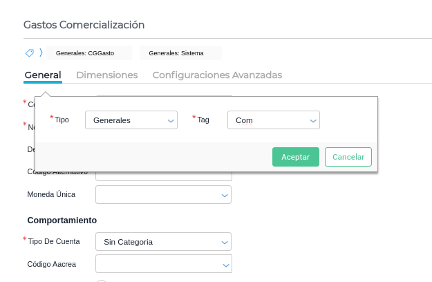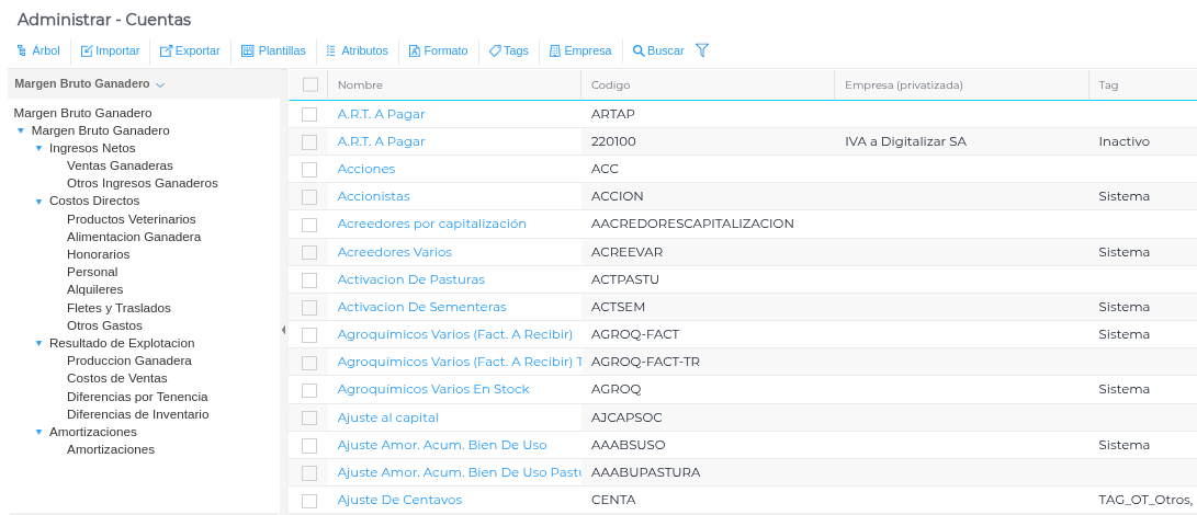 Será necesario clasificar las cuentas contables mediante Tags para indicar a qué categoría pertenece cada costo ( ver configuraciones más adelante ).
