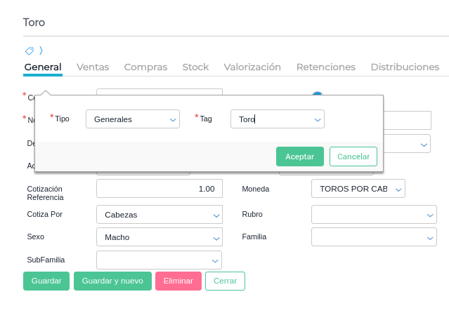 El tag es amplio en cuanto al nombre que se le quiera asignar, es decir, que se le puede poner cualquier nombre. Si se requiere ser más específico en el informe eje: “Ternero recría” o “Novillo terminación”