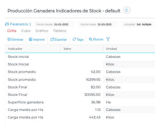 Stock final: cabezas totales al fin del periodo de análisis (“Fecha hasta” de Parámetros)