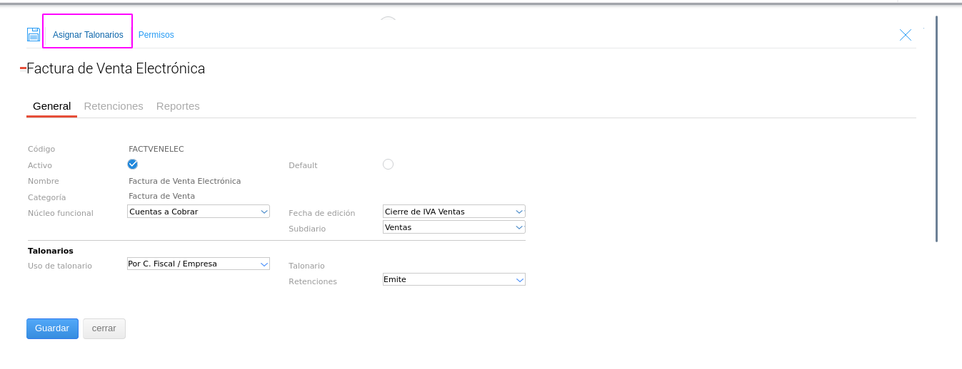 3- Una vez dentro del documento, escoger Asignar talonarios.