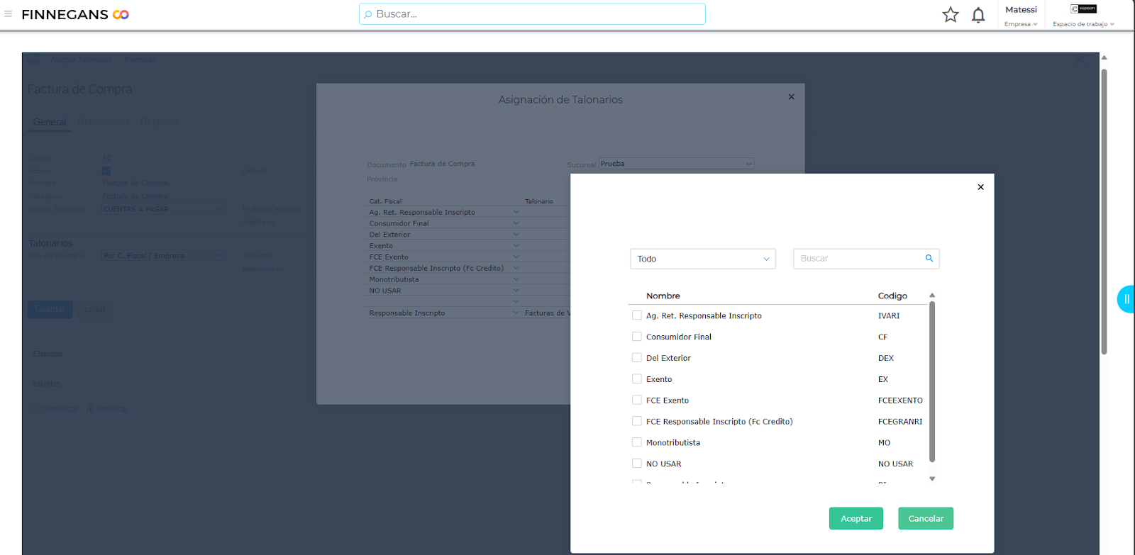 2. Dentro de la misma entrar a la categoría fiscal correspondiente y revisar que la misma tenga el check activo, sino activarlo: