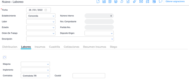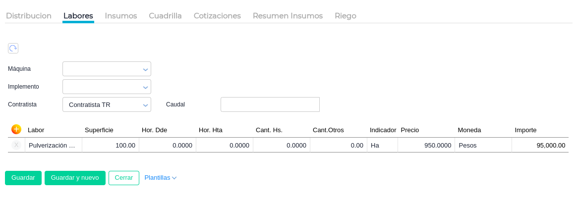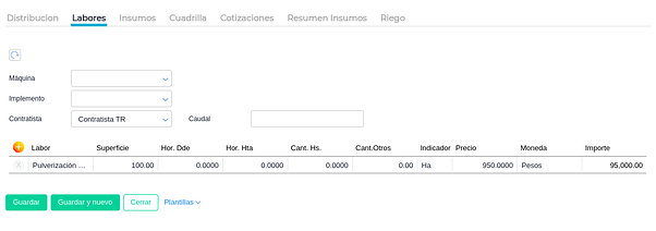 Acá vemos que para un laboreo nuevo, te muestra el valor del laboreo que se encuentra en el tarifario de labores mixtas que, según la fecha, el establecimiento y el contratista se encuentra vigente.