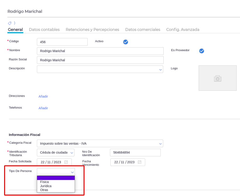 Debemos completar el campo Tipo de persona para ese cliente, en el maestro de Clientes.