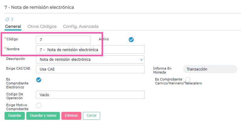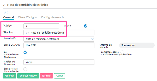 Los talonarios deben configurarse para cada tipo de documento de Nota de Remisión que se utilice.