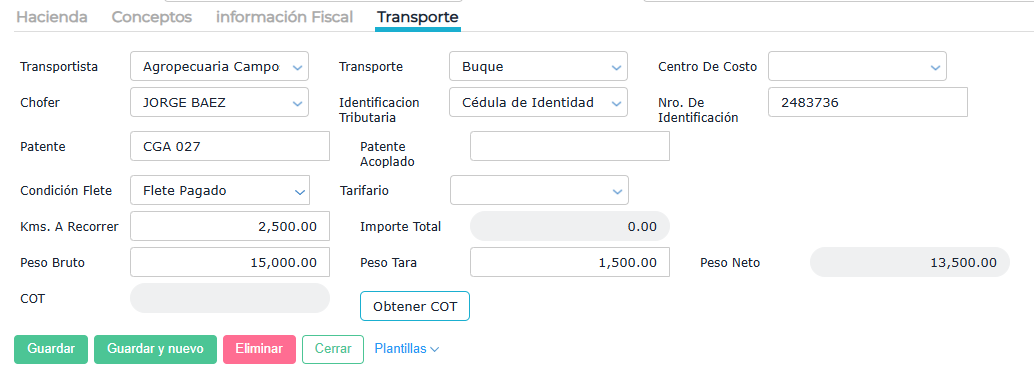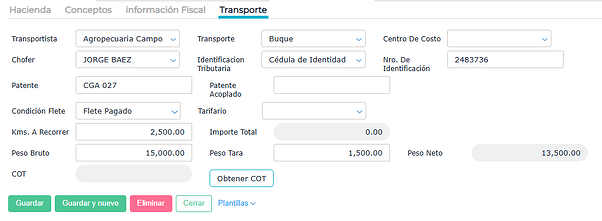 El transportista es un proveedor que tiene activo el check Es transportista