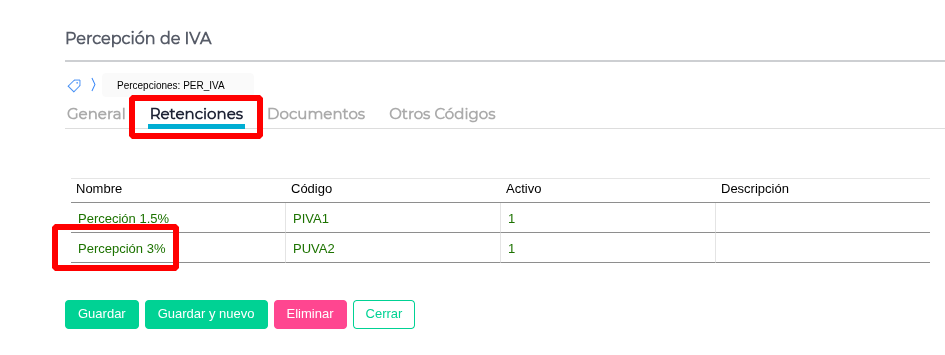 Posicionarse en la solapa Retenciones e ingresar al concepto de retención en cuestión: