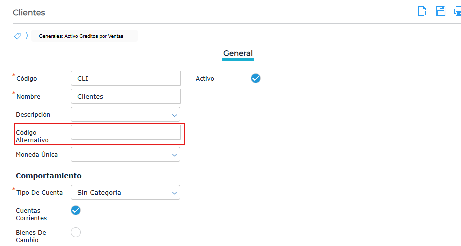 Si se quieren agregar los códigos que corresponden a cada cuenta contable respecto del balance de sumas y saldos, lo ideal es hacerlo en el campo “código alternativo” de cada uno de estos registros.