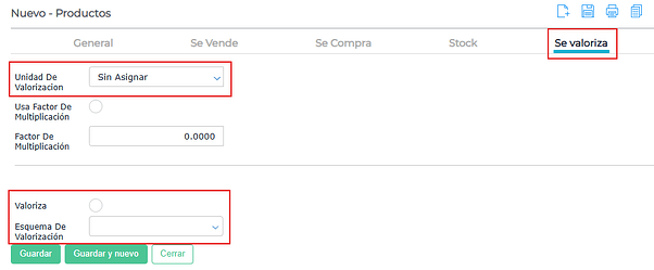 Además, se deben configurar las variables relacionadas a la valorización de stock en la solapa “se valoriza”: