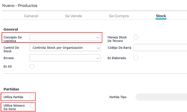 Dentro de la solapa “stock”, se configuran determinadas variables relacionadas a la gestión del stock.