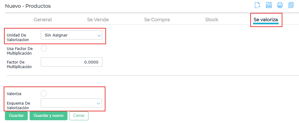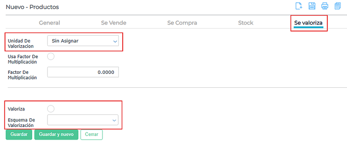 Además, se deben configurar las variables relacionadas a la valorización de stock en la solapa “se valoriza”: