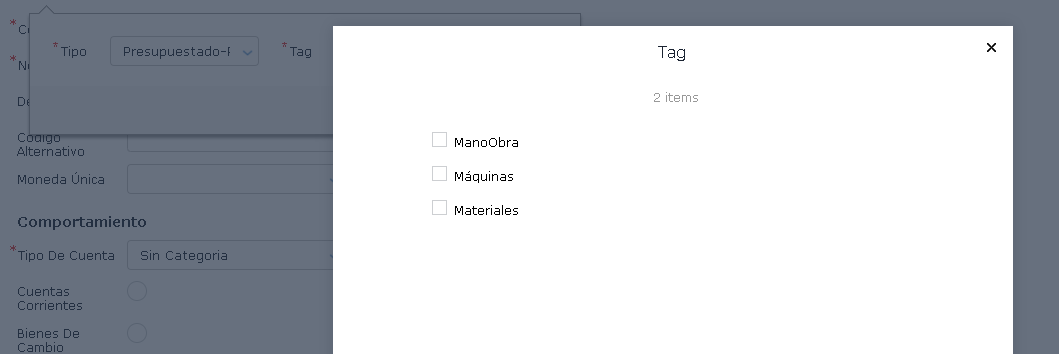 Todas las cuentas deben ser etiquetadas (tags) con el tipo de tag “Presupuesto - real” y tag “Mano de obra”, “Materiales”, “Máquinas”, según corresponda.