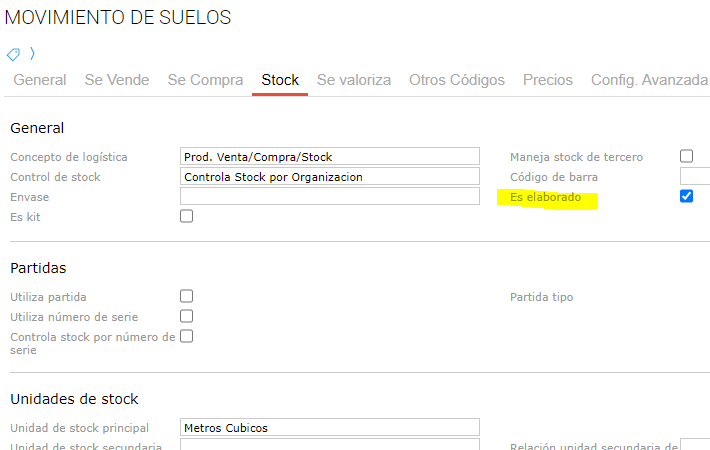 Para el caso de los productos en los que se necesite tener un análisis de precio detallado, se deberá tildar el check “Es elaborado”. De esta manera, se habilita la opción para indicar la fórmula*** del análisis de precio unitario de ese producto.