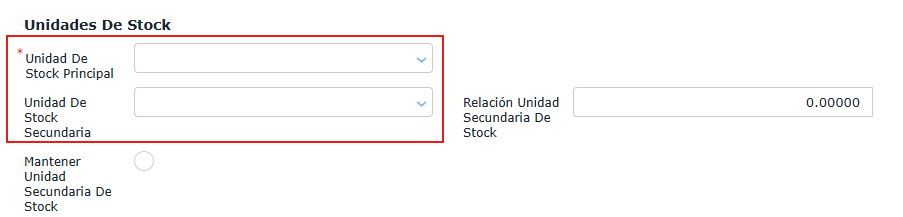 La unidad de stock principal es aquella en la que se va a gestionar el stock de este producto al visualizar los informes de inventarios. También se puede asignar una unidad de stock secundaria.
