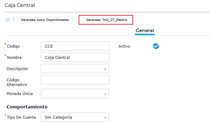 - TAG_OT_Efectivo: si la cuenta se agrega en la solapa “Efectivo” de estas transacciones.