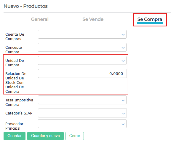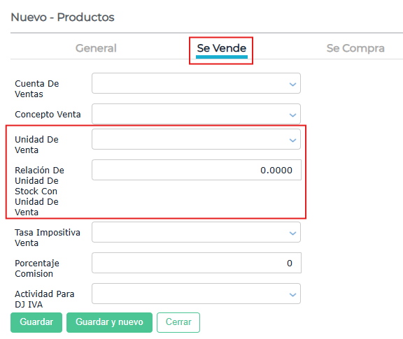 IMPORTANTE: si el producto se vende y/o se compra, también se deben definir unidades de venta y de compra en las solapas que corresponda y su relación respecto de la unidad de stock principal.