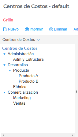 Estos pueden organizarse en formato de árbol, como los demás maestros disponibles en el sistema, lo cual sirve también al momento de analizar los reportes.