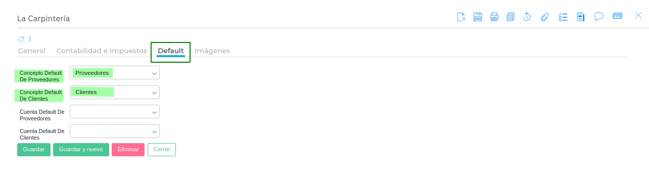 Importante: Se puede configurar en el maestro de empresas la cuenta y concepto “por default”, para que de esta forma no se tenga que sumar manualmente en cada cliente o proveedor.