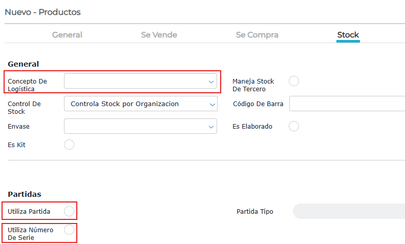 Dentro de la solapa “stock”, se configuran determinadas variables relacionadas a la gestión del stock.